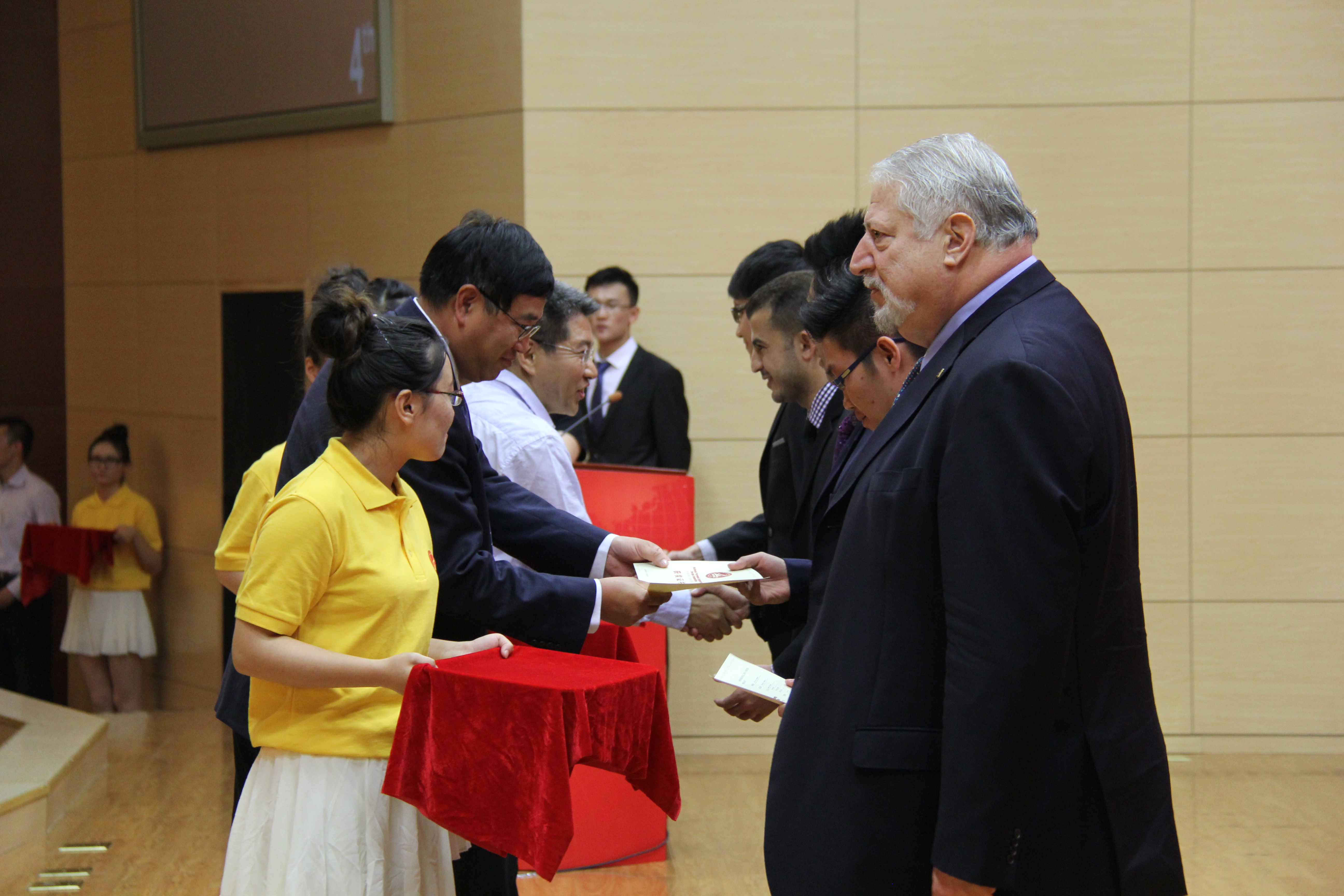 图三 哈丁歇尔顿公司董事长夏文武先生为获奖选手颁奖